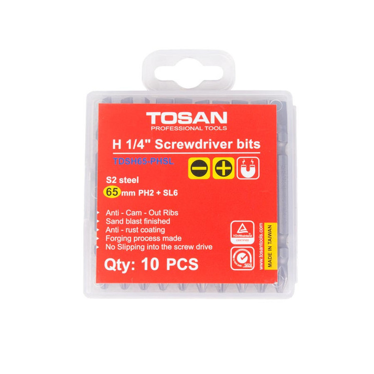سری پیچ گوشتی یک سر چهارسو یک سر دو سو توسن مدل TDSH65-PHSL بسته 10 عددی